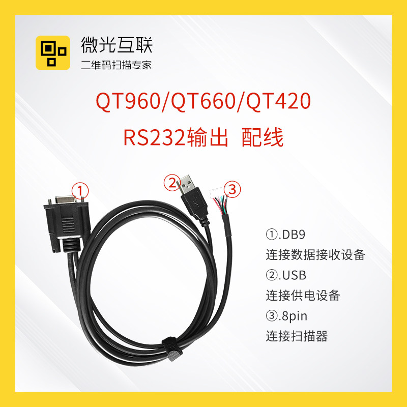 微光互聯條碼二維碼掃瞄器1 5米標準配線usb數據線串口rs232